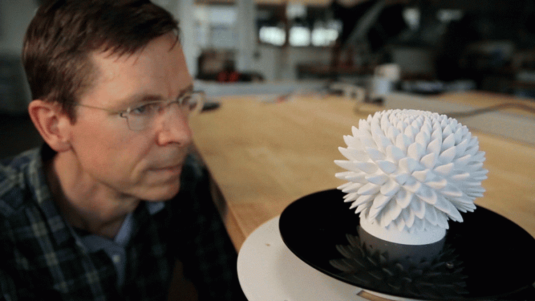 John Edmark’s insatiable curiosity often gets him into trouble, but on occasion it leads him to invent ingenious devices that tempt others to eagerly squander their time. Notable examples include: the Helicone, an interactive kinetic toy, and Blooms, a new type of sculpture, which animates when spun under a strobe light. Videos of his creations have received over 60 million views online. He is a lecturer in the design program at Stanford University. Prior to focusing on art and design, he spent several years researching virtual environments at Bell Laboratories. His favorite means for wasting his own time include hyper-stereo photography, stop-motion animation, natural pattern formation, and Tuvan throat singing.